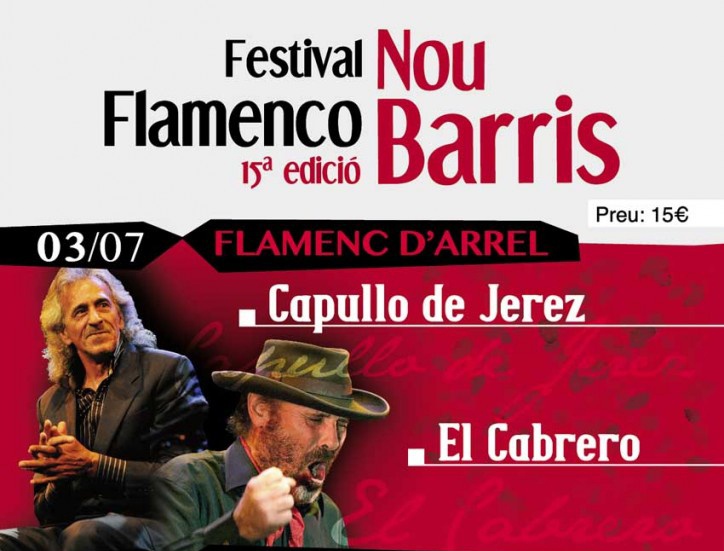Arriba un any més –i ja en són 15- el Festival Flamenco Nou Barris, una de les cites del calendari flamenc amb més trajectòria i més consolidades de Catalunya. Part de l’èxit es deu al seu entorn, el pati de la Seu del Districte. I sobretot es deu al seu cartell. Enguany els organitzadors han dividit el programa en dos dies, amb una clara diferenciació. Demà serà la nit de les promeses del flamenc. Avui, l’escenari és per a El Cabrero i Capullo de Jerez. Els artistes ens mostraran el seu flamenc més compromès i reivindicatiu.