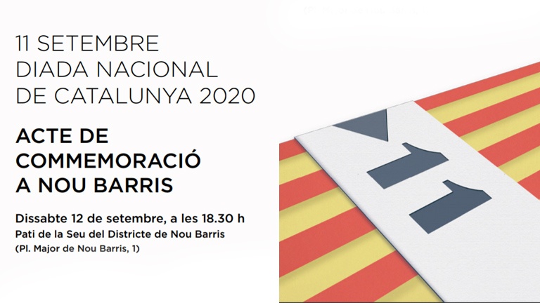 Com és habitual des de fa alguns anys, Nou Barris commemora la Diada el primer cap de setmana després de l’11 de setembre, de la mà de la Fundació Procat i el Centre Cultural Els Propis amb la col·laboració del Districte. L’acte consistirà en els tradicionals parlaments i concerts de cant coral i música de banda i tindrà lloc al pati de la Seu del Districte. A causa de la situació sanitària que vivim, s’han pres totes les mesures de seguretat per garantir la seguretat de la jornada. Per aquesta raó, l’accés al pati tindrà lloc a partir de les 17.30h de manera esglaonada i amb reserva prèvia. A més, a l’entrada s’oferirà gel hidroalcohòlic i es prendrà la temperatura, l’accés i el desallotjament seran per portes diferents, i serà obligatori l’ús de mascareta.