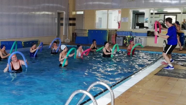 La col·laboració entre el casal de gent gran i el poliesportiu va començar l’any passat, oferint sessions gratuïtes d’aiguagim al juliol per a un màxim de 20 usuraris. Aquest any, s’han ampliat les sessions a dos mesos, juliol i setembre. “És un acord que hem fet amb el casal. Aprofitem que ara el casal està tancat perquè vinguin i facin esport i activitat física aquí- explica Miquel Andrés, director d’Eurofitness Can Cuyàs- Oferim unes vint places, i s’han apuntat una quinzena.” Aquestes sessions són gratuïtes per als participants. “Ens van oferir això per fer-ho al mes de juliol i la veritat és que ens va estupendament. I si no l’has de pagar, encara millor- afirma Mari Siles, una de les participants- Sortim que ho has mogut tot i arribes a casa relaxada. Aquí les pensions que tenim són molt petites, com a tot arreu, i si això és gratuït, imagina’t”. Són 45 minuts d’activitat física però també de diversió i convivència. “Va molt bé, em relaxa molt i sembla que ets més àgil”, assegura Encarna Torre.