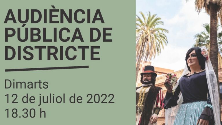 Aquesta tarda tindrà a les 18.30h se celebra a la Sala de Plens de la Seu del Districte la darrera Audiència Pública abans de les vacances d’estiu. La sessió serà presencial però també es pot seguir en directe per streaming.
