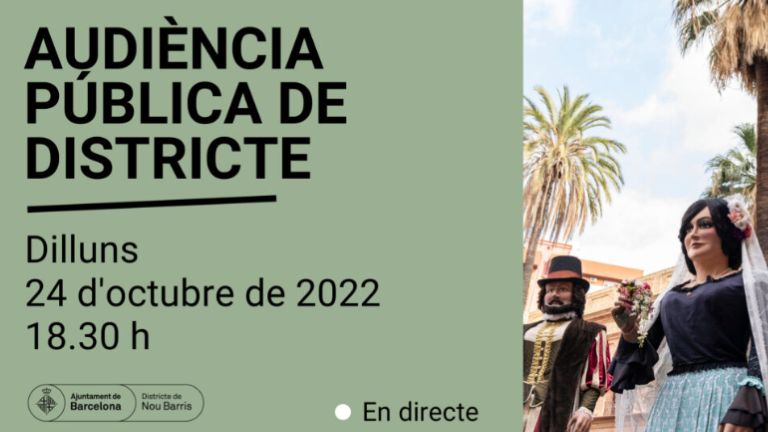 Nou Barris celebra avui, a partir de les 18.30 h, una nova sessió de l’Audiència Pública. L’acte tindrà caràcter semipresencial. Per tant, a través de ja.cat/audiencianoubarris podeu: