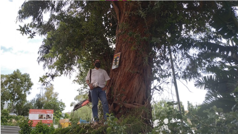 Entitats com l’Arxiu Històric Roquetes-Nou Barris, l’AV Roquetes, l’associació ecologista Grodema i el projecte Date una Huerta, han volgut sensibilitzar el veïnat sobre la importància de conservar aquest arbre. Per això l’han senyalitzat amb un cartell explicatiu que sota el títol ‘Salvem l’eucaliptus’. “L’arbre pertany a una zona de cases baixes que era la part antiga de les Roquetes. S’han perdut gairebé totes aquelles casetes, però creiem molt important salvar l’eucaliptus com un testimoni més d’aquella època. – afirma Arnaldo Gil, de l’Arxiu Històric Roquetes-Nou Barris- Un cop catalogat, no hi haurà problemes. Però ara mateix, just on és i amb les obres de l’edifici tan a prop, corre perill.” De fet, l’Ajuntament ja el va indultar i el va treure del cercat de les obres de la plaça. No van córrer la mateixa sort un xiprer i un pi també molt antics.