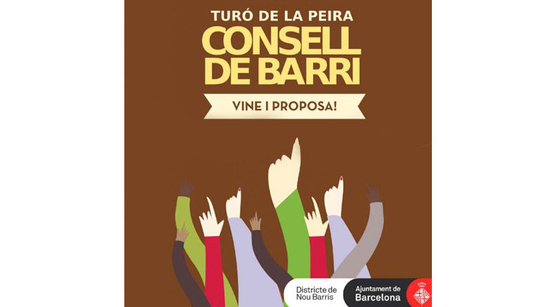 El barri del Turó de la Peira celebra avui el seu consell de Consell de Barri. La sessió tindrà lloc a les 19 h, a l’Espai Jove les Basses, al carrer Teide número 20 i com sempre està obert a tothom. Veïns i comerciants estan pendents d’aquesta sessió per informar-se dels avenços de les obres del nou poliesportiu que substitueix la piscina Turó i el camp de futbol sala del Montsant. Un altre tema que preocupa és el futur equipament que s’ha de situar als baixos de l’illa que s’està construint al carrer de Montsant. Els veïns volen conéixer el projecte. A més, també sortirà l’error administratiu que retardarà el bateig de la plaça d’Humberto Rivas.