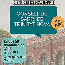Aquest vespre té lloc el tercer consell de barri del mandat. Es tracta del de la Trinitat Nova, que començarà a les 19h a la Casa de l’Aigua (situada al carrer de Garbí, 2). La sessió servirà per constituir el consell, recollir suggeriments per a l’elaboració del PAM i parlar de temes pendents del barri. Entre ells i sobretot, l’equip de govern explicarà el futur del Casal de Barri de la Trinitat Nova. L’equip anterior de govern es van comprometre a construir imminentment aquest equipament però segons va afirmar l’actual regidora de Nou Barris, Janet Sanz, això no serà possible l’any vinent ja que s’ha trobat amb el pressupost d’inversió ja esgotat i compromés en altres projectes aprovats per CiU. Tot i les explicacions, els veïns estan decebuts i molestos.