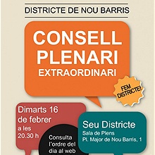 Aquest vespre a partir de les 20.30h se celebra un Plenari extraordinari del Consell del Districte. L’ordre del dia inclou només un punt de govern: ‘Informar sobre l’aprovació inicial del Pla Especial Urbanístic de Protecció i Potenciació de la Qualitat Urbana en l’àmbit de la ciutat de Barcelona’. També hi haurà el torn de precs i preguntes del públic assistent a la sessió que tindrà lloc al Saló de Plens de la Seu del Districte.