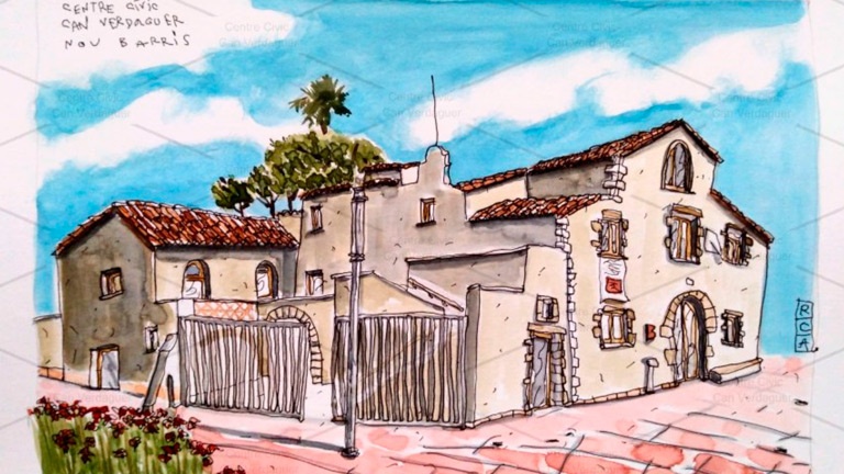 Les portes del centre cívic Can Verdaguer continuen tancades, però no així la sala d’exposicions en línia del seu web. Allà podeu gaudir dels dibuixos que l’artista Raúl Cuenca ha fet d’alguns dels racons més emblemàtics de Nou Barris. Edificis, places i espais comuns tan coneguts com el castell de Torre Baró, el passatge de l’Esperança, o les masies de Torre Llobeta i de la pròpia Can Verdaguer (a la imatge superior) són capturades amb el traç típic de la folofia dels urban sketcher.