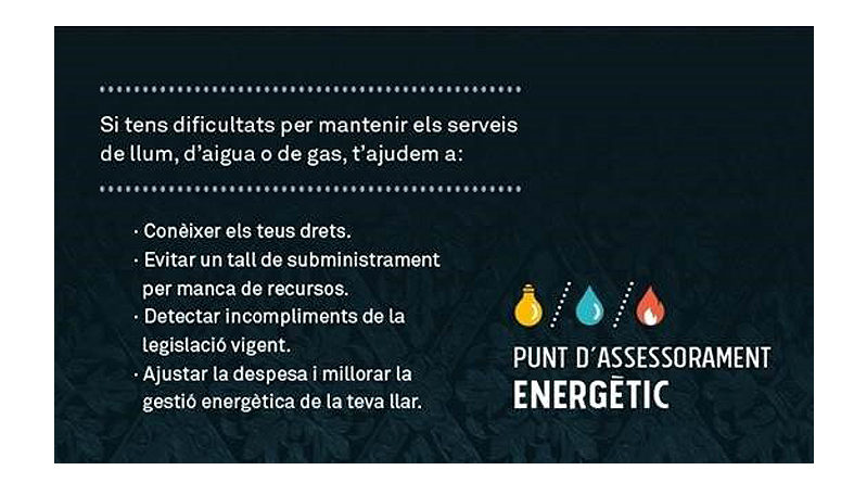 -Garantir l’accés als subministraments bàsics amb especial atenció a les famílies més vulnerables de la ciutat de Barcelona.