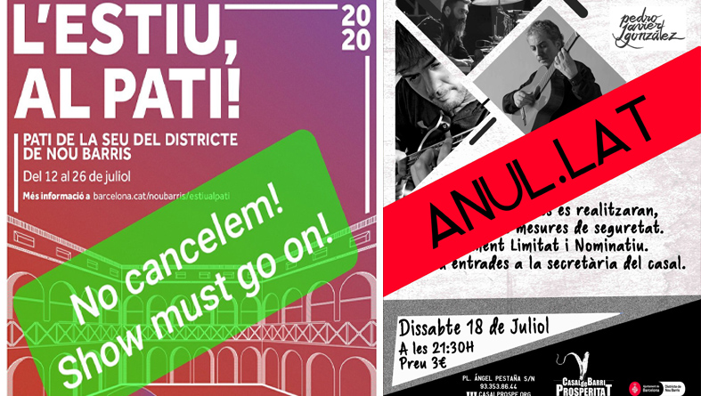 L’anunci divendres de noves mesures restrictives per tal de controlar els contagis de la Covid-19 ha provocat una allau de dubtes entre tots aquells que organitzen o pensen assistir a les diverses activitats que s’han agendat aquests dies. Per aquesta raó, es recomana contactar o confirmar a través de xarxes socials i webs que continuen en peu els concerts, tallers, cursos o espectacles programats en cicles com l’Operación Solete, els actes del Centre Cívic Torre Llobeta, les trobades familiars d’Ubuntu o els tallers del centre cívic Zona Nord.