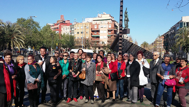 El bus de la memòria ret homenatge a l’estàtua de la República