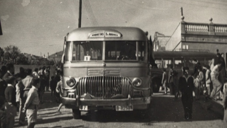 El diumenge 17 de novembre de 1953 es va inaugurar el primer servei urbà d’autobús en el territori de l’actual Nou Barris, “que no por su corto recorrido, sino por su eficacia tiene una importancia suma en nuestros transportes urbanos ya que permite un directo acceso, desde el centro de la ciudad a unas barriadas sitas en las afueras nordeñas de ex pueblo de San Andrés que alcanzan un censo de población de veinticinco mil vecinos; tales son los núcleos urbanos que son conocidos por Las Roquetas.” A la festa inaugural va assistir nombrós públic que esperava l’arribada de les autoritats que organitzaven l’acte.
