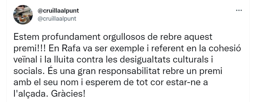 Des del Cruïlla al Punt no han trigat en demostrar el seu agraïment per aquest reconeixement, a través de les xarxes socials.