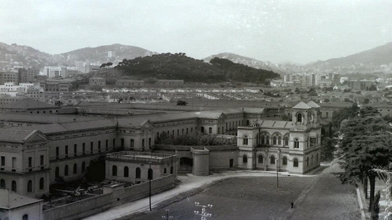 La fotografia prové de l’Arxiu Històric Roquetes – Nou Barris i està feta des d’un dels edificis que es van començar a construir al voltant del recinte mental als anys 60. Pocs anys després l’Hospital de Sant Pau va començar a enderrocar alguns pavellons per construir-hi habitatges i aconseguir recursos per ampliar l’hospital del carrer de Sant Antoni Maria Claret. A més, la precarietat econòmica i les noves tendències psiquiàtriques van fer que la institució esdevingués inviable.
