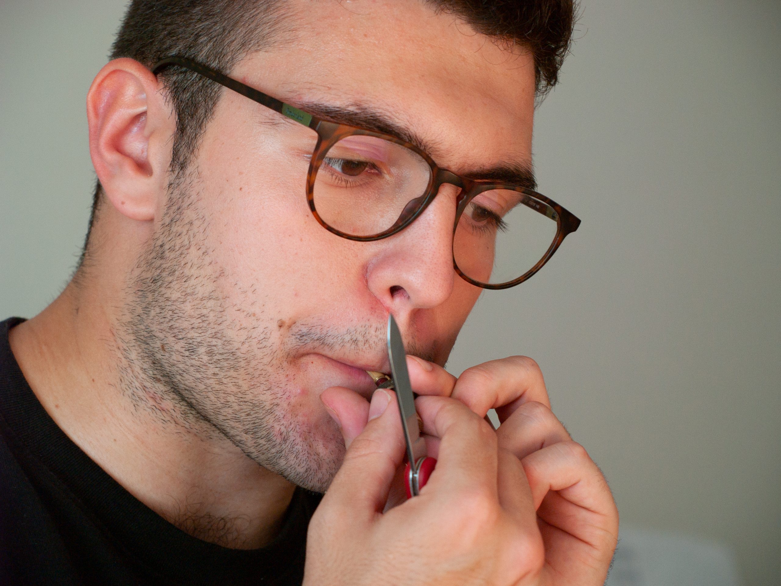 Ara en Nicolás llima bé les canyes del tible, per assegurar que el seu esforç i treball, surt amb força i bon so per la campana d’aquest instrument.
