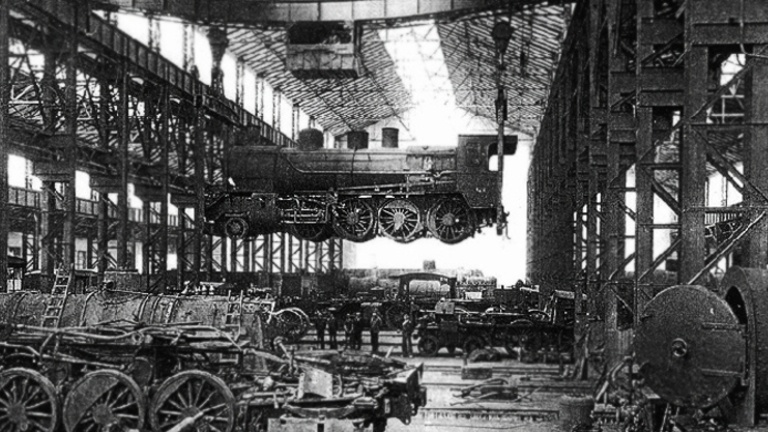 La fotografia mostra l’activitat  a l’interior dels “Talleres Generales de Material y Tracción de la Estación de San Andrés”, més coneguts popularment com els tallers del Nord. Aquests tallers van ser construïts a la segona dècada del segle XIX per donar servei a la línia Barcelona-Saragossa, impulsada pels germans Girona, que tenia l’origen a l’Estació del Nord i que va arribar a la capital de l’Aragó el 1861. Es van fer als terrenys de la masia de Can Dragó, just a tocar de l’actual Meridiana. Precisament per aquest motiu, un cop enderrocats els tallers,  els equipaments esportius que s’hi va construir amb l’impuls dels jocs olímpics (el llac, el camp de futbol de l’Alzamora, les pistes d’atletisme i el poliesportiu Palestra) es va anomenar parc esportiu Can Dragó.