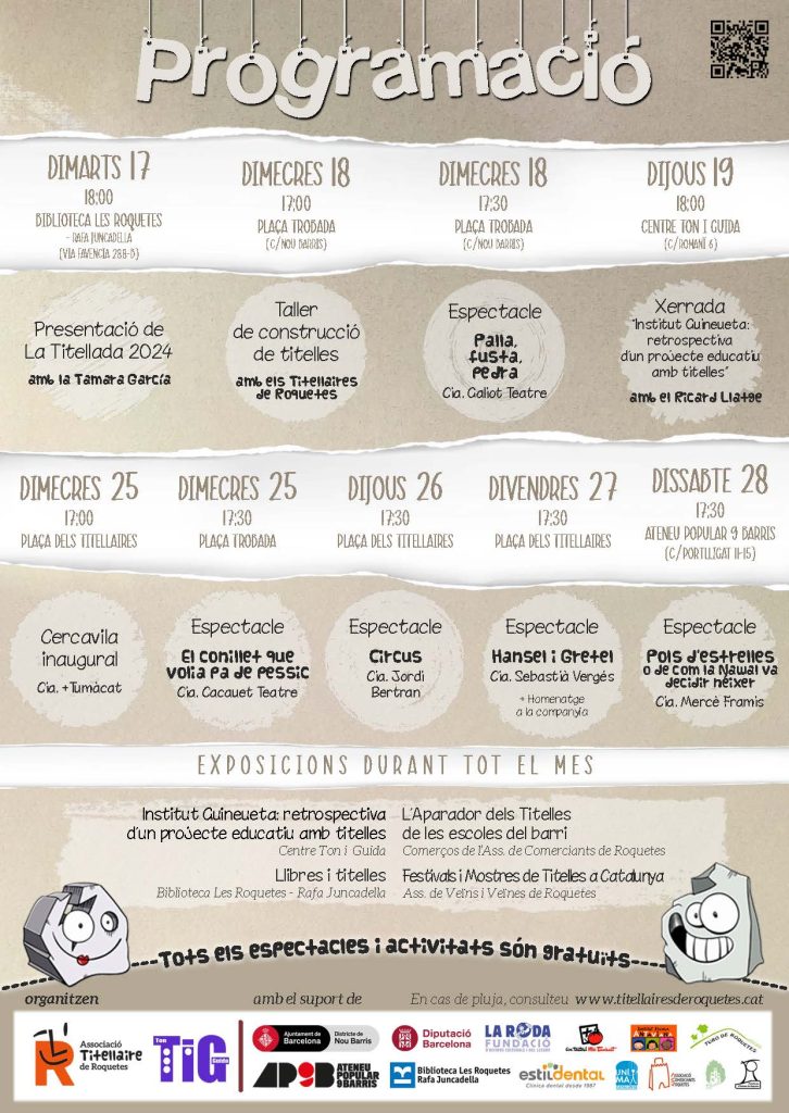 Arriba un any més, i ja són 19, la Titellada, la Mostra de Titelles de les Roquetes. Es va crear el 2006 de mans de l’Associació Titellaire de les Roquetes i el Centre Ton i Guida per reivindicar i difondre l’art dels titelles i tota la seva diversitat. Per això, omplen els carrers i les places del barri amb espectacles familiars, cercaviles, exposicions, activitats amb les escoles, entre altres. També s’hi fa un homenatge a una companyia titellaire, que enguany serà la Companyia Sebastià Vergés, una històrica que va engegar la seva trajectòria al 1910 i ja va per la tercera generació d’artistes. Dins la programació, portaran l’espectacle ‘Hansel i Gretel’ el dia 27 a les 17.30h a la plaça dels Titellaires.