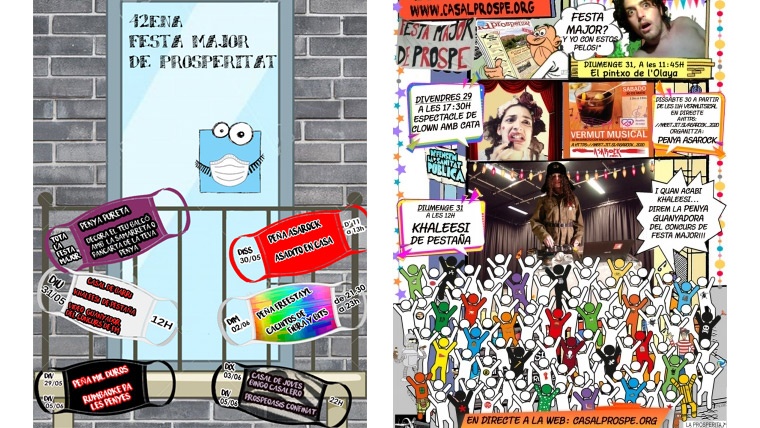 Si una cosa té de característica la festa major de la Prosperitat és l’ambient a les places i els carrers. La situació actual no ho ha fet possible, però el barri no s’ha rendit i ha organitzat una sèrie d’actes que es difondran a través de l’Instagram i del web del Casal de Barri de la Prosperitat. Són un grapat d’actes que recorden que aquests són dies de concerts, trobades i desenes d’activitats per a totes les edats.  A més, han convidat les diverses a penyes a enviar en vídeo una recreació del que hagués estat el seu acte d’enguany. Avui toca un vermut musical acompanyat de les instruccions del xef del casal per cuinar un bon pintxo.