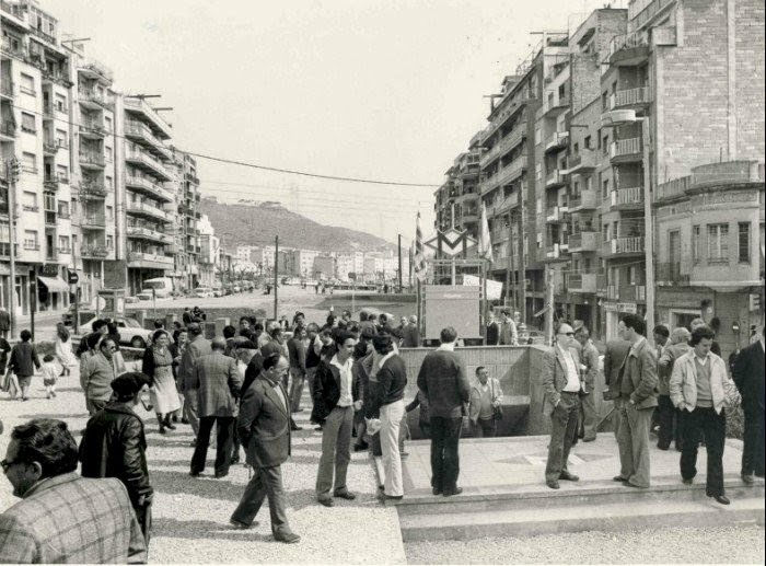 Aquesta fotografia es va fer el mes d’abril de 1982 a la sortida de la recent estrenada parada de metro via Júlia, aquell moment inaugurada com a Roquetes, tot i trobar-se entre Verdun i la Prosperitat. L’estació va arribar després d’una llarga campanya veïnal.
