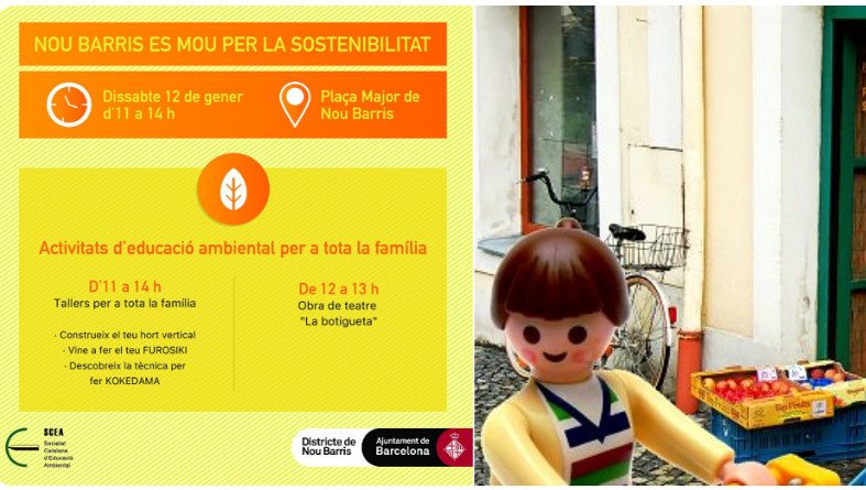 Avui teniu una cita amb l’educació ambiental a Nou Barris. La plaça Major de Nou Barris acollirà tallers d’educació ambiental adreçats a tota la família, acompanyats de l’espectacle de titelles ‘La Botigueta’, de la companyia Tanaka Teatre, en el qual el públic participa, decideix i es converteix en un/a consumidor/a amb superpoders.