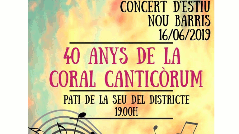 La Coral Canticòrum entra a la maduresa amb uns esplèndids 40 anys que pensen celebrar amb un concert que començarà avui a les 19h al Pati de la Seu del Districte. Es tracta del Concert d’estiu que aplega quatre corals, la mateixa Canticòrum, la Ideal d’en Clavé, la Santa Eulàlia i la Voces Amigas, a més d’alguns cantaires solistes i un conjunt instrumental.
