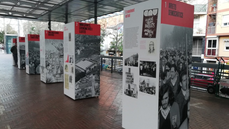 Set torretes de quatre cares conformen l’exposició “Harry Walker: obrers i veïns en lluita” que es pot veure fins al 15 de març a la marquesina de la Via Júlia. Recorda, per una banda, els 62 dies de vaga dels treballadors i treballadores de la fàbrica, i, d’altra banda, la mobilització veïnal, un cop desmantellada la factoria, per reconvertir el solar en equipaments públics.