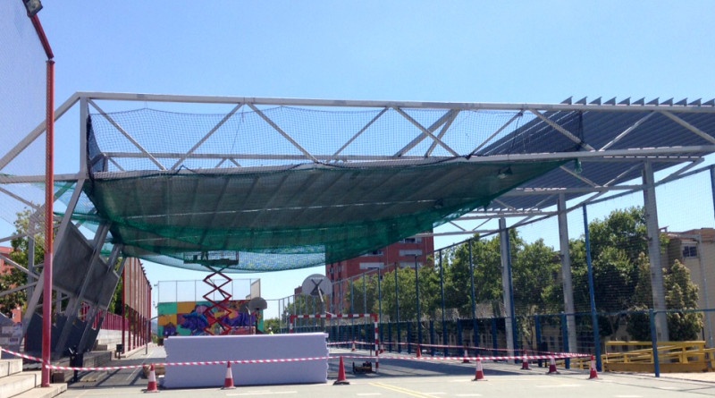 Deu anys després de la seva inauguració, la pèrgola de la via Favència renova la imatge. Aquests dies els operaris han ocupat part de les pistes de futbol sala i bàsquet per substituir l’antic sostre per un de nou. El pas del temps, el sol i les inclemències ambientals han deteriorat les antigues planxes que donen ombra a un dels espais de trobada més importants per als joves de Verdum i les Roquetes. Està previst que abans del cap de setmana els usuaris de les pistes puguin hi tornar a realitzar activitats esportives normalment.