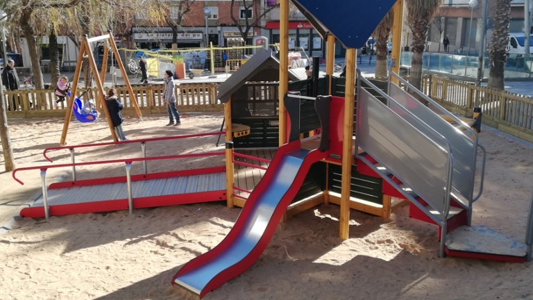 L’àrea de jocs de la plaça dels Nou Pins incorpora criteris de diversitat funcional