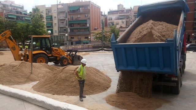 Una desfilada de camions amb sorra han anat convertint la plaça d’Àngel Pestaña en una platja. Ja són 23 les edicions del Prospebeach, un cicle que omple d’activitats infantils i esportives la plaça més popular de la Prosperitat fins a finals de juliol. Els operaris han treballat tot el matí per col·locar prop de 500 tones de sorra. A partir d’aquí s’iniciaran les activitats habituals. Aquest cap de setmana comencen les competicions amb el torneig de volei-platja 2×2. El camp de setmana vinent serà el torn del torneig estrella, el volei-platja 4×4, que ha tornat a omplir ràpidament totes les inscripcions i compta amb 96 equips. El 8 de juliol jugaran des de les 8 del matí fins a la matinada. A més també hi ha el torneig de tennis-platja el 15 de juliol.