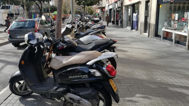 La vorera nord de la via Júlia s’omple de motos aparcades
