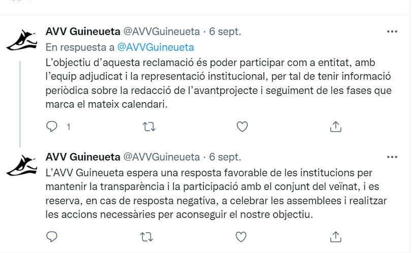 L’entitat argumenta que vol estar al dia de l’avanç del procés de l’avantprojecte i el seguiment de les obres