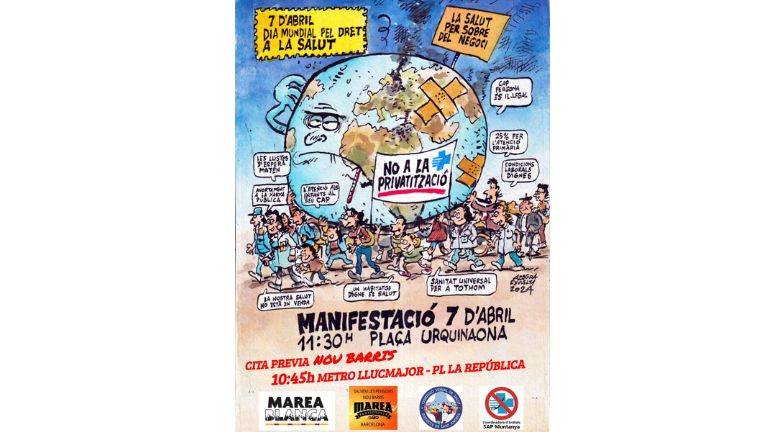 El 7 d’abril se celebra el Dia Mundial de la Salut per commemorar l’aniversari de la creació de l’Organització Mundial de la Salut (OMS) l’any 1948. I coincidint amb aquesta efemèride, entitats d’arreu de Catalunya han convocat una manifestació a Barcelona per defensar la sanitat publica “de la privatització i que la salut estigui per sobre del negoci”. Aquesta protesta començarà a les 11.30h a la plaça d’Urquinaona. Com sempre, Nou Barris té una convocatòria prèvia. Serà a les 10.45h al metro de Llucmajor.