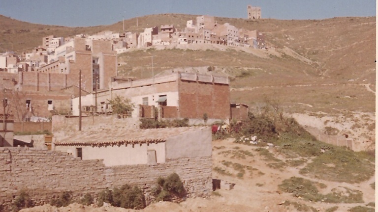 La fotografia va ser feta al maig de 1966, i retrata el paisatge del que era aleshores el barri que avui dia coneixem com les Roquetes. Concretament es veu la part superior la línia que marca avui dia el carrer de la Cantera, que puja cap al castell de Torre Baró. La part inferior correspondria avui dia als carrers del Pla dels Cirerers i dels Nou Barris. La zona havia estat terra de vinyes fins a meitat del segle XX, quan amb els emigrants, sobretot del sud d’Espanya, van arribar al territori per viure-hi, ja que a la resta de la ciutat els hi era pràcticament impossible accedir a un habitatge. Part d’aquests primers veïns van apostar per construir ells mateixos casa seva, sovint sense permisos i amb la solidaritat d’altres roquetencs, en una zona sense serveis ni subministres. L’any 1969, més del 60% de les cases no tenia aigua corrent, i el 13% no tenia electricitat. L’aigua l’extreien dels torrents i pous de la zona. Els treballadors havien de matinar per baixar fins a Sant Andreu per agafar el metro per anar a la feina i les dones carregaven els cistells de la compra pendent amunt i avall des de Sant Andreu o altres zones de Verdun.