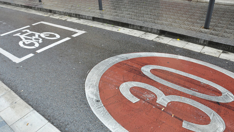 A més, s’està implantant nova senyalització horitzontal que s’inclourà a tots els carrils bici bidireccionals i en tots aquells unidireccionals en què les bicicletes circulin en sentit contrari al dels cotxes. Es tracta d’un pictograma que pretén alertar als vianants de la possibilitat que els ciclistes puguin circular en sentit contrari als vehicles.