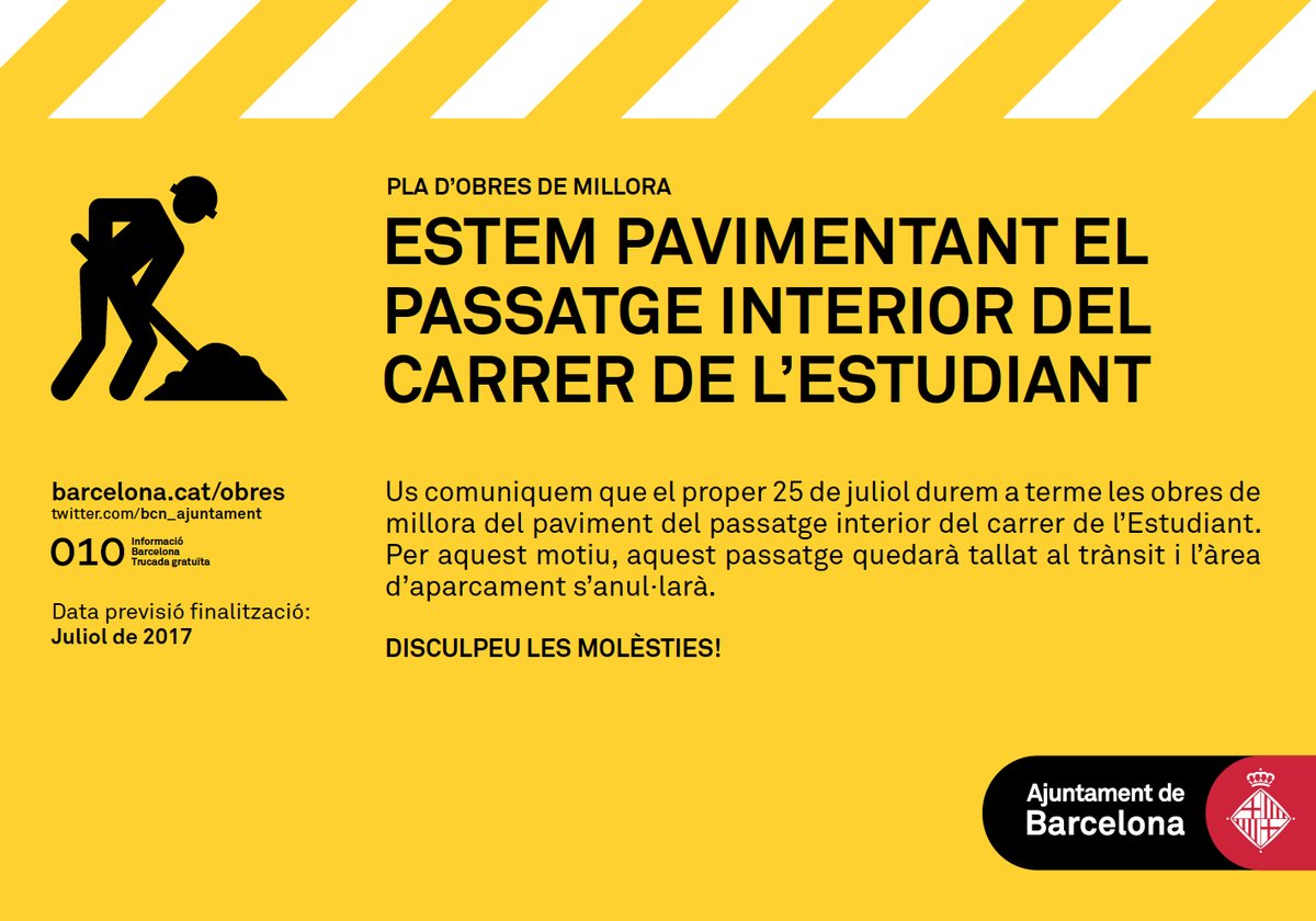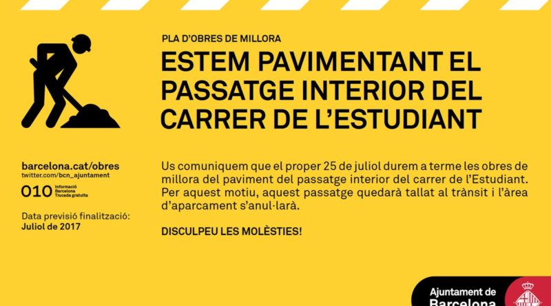 Durant el dia d’avui, l’Ajuntament té previst dur a terme obres de millora del paviment del passatge interior del carrer de l’Estudiant, situat al barri de Porta. Per aquest motiu, aquest passatge quedarà tallat al trànsit. A més, l’àrea d’aparcament quedarà anul·lada en aquest carrer mentre durin les tasques de pavimentació.