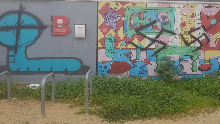 Els Joves del Casal de la Prosperitat van denunciar diumenge els símbols feixistes pintats en una de les façanes de l’equipament. Els joves van compartir a Twitter una publicació de la façana del casal on hi havien aparegut unes creus esvàstiques. “No és el primer cop que venen a decorar-lo i ens agradaria que sapiguèssiu que, casualment, aquest atacs els fan quan ens posen al costat dels veïns i veïnes que reclamen els seus drets”, afirmen els joves a la seva publicació.  Arran del tweet han estat moltes les entitats i veïns que s’han sumat al rebuig d’aquest símbols i han defensat la solidaritat de les xarxes de suport i dels moviments que lluiten diàriament contra els desnonaments.
