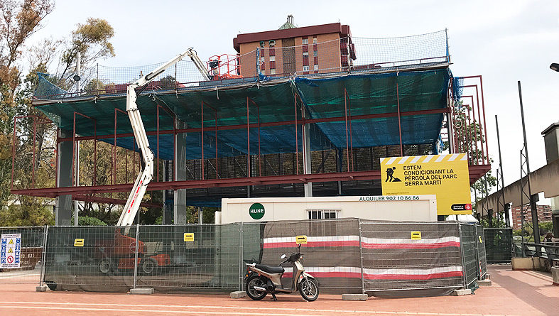 La segona fase d’obres de la remodelació de la pèrgola del parc Serra Martí ha de solucionar els problemes que van quedar pendents en la primera fase d’obres per manca de pressupost. Ara s’hi destinen prop de 230 mil euros. La pèrgola, de l’any 1995 i de vuit metres d’alçada, tenia filtracions a la coberta i pels laterals també hi entrava la pluja, cosa que malmetia la tarima de fusta. Ara es tancarà el recinte de la pèrgola amb policarbonat per evitar l’entrada d’aigua de la pluja horitzontal, i s’hi instal·laran baranes per evitar caigudes. “És una alegria que hagin reprès la reforma de la pèrgola – afirma el president de l’AV Canyelles, Manuel Sánchez- perquè hi plovia més sota la pèrgola que fora. A més aprofitaran per solucionar el problema de la visibilitat. Quan ve molta gent, per exemple a les festes majors del barri, hi ha dues columnes a l’escenari que no deixen veure i ara les treuran.” Però tot i la l’alegria, els veïns també tenen una llista de greuges. “Ens havien venut que farien la coberta lateral es podria retirar en cas de bon temps i ara va fixa – es queixa Sánchez- i perdem un punt important per al barri, que és que la il·luminació amb leds de colors, a l’estil de la torre Agbar.” Una il·luminació que el departament de l’Institut Municipal del Paisatge Urbà ha denegat. “Ens diuen que perquè podria afectar a la ronda de Dalt, però la ronda de Dalt passa coberta a l’altura del parc”, afegeix Manuel Sánchez, que portarà les queixes a una reunió amb Districte de Nou Barris.