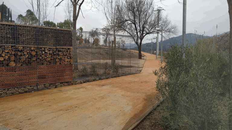 Les obres han rebaixat el fort pendent de la zona, que es trobava en un 16%. Al voltant del camí s’ha creat una zona enjardinada amb arbres i plantes. Per fer-ho es va haver de retirar bona part de la vegetació que cobria tot aquest turó. Estava previst que les obres estiguessin enllestides al juliol, però a hores d’ara el nou pas encara està tancat als vianants. Per poc temps, perquè a banda dels camins i arbres els operaris ja han instal·lat molts elements com ara una barana per al pas més elevat i un peculiar hotel d’insectes que dona la benvinguda a l’entrada del camí pel carrer d’Oristà.