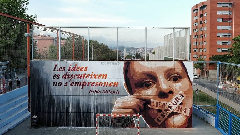 Nou Barris disposa d’un mural a favor de la llibertat d’expressió. Està ubicat a les pistes Antoni Gelabert, a la Via Favència, i inclou una cita del cantautor cubà Pablo Milanés, que diu “Les idees es discuteixen, no s’empresonen”.  L’actuació, duta a terme per l’artista Roc Blackblock, es va emmarcar dins dels actes de “L’Estiu, al Pati!”, el festival que ha tingut lloc al districte des del 30 de juny i que va acabar el passat cap de setmana.