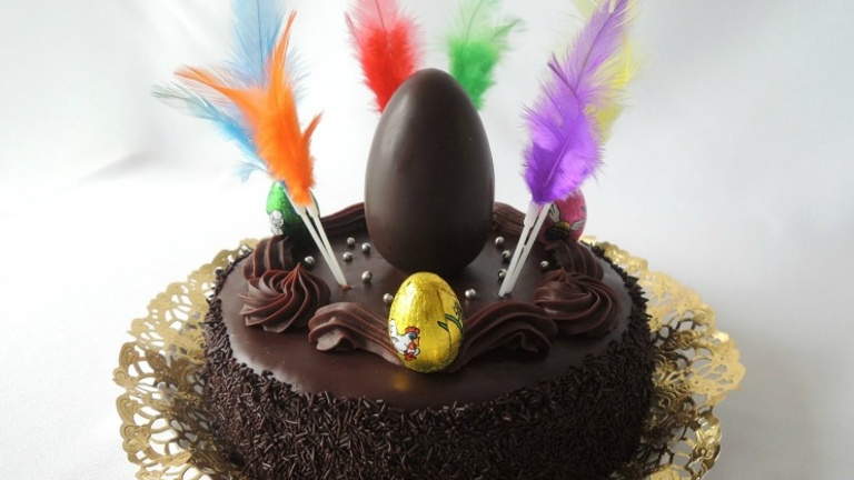 • La decoració es remata amb ous de xocolata, pollets de feltre i plomes d’oca tenyides de colors ben vius.